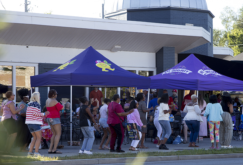 DJ Rusty Redenbacher's playlist caused a dance line to break out on the sidewalk